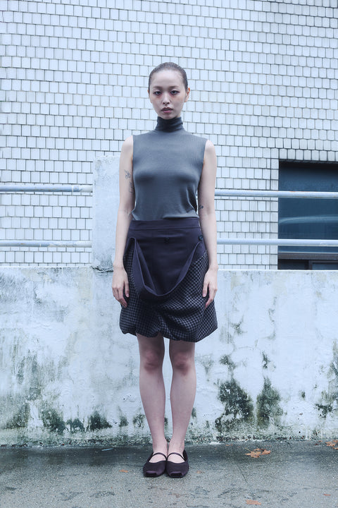 MULTIWAY CHECKED SKIRT / CHARCOAL