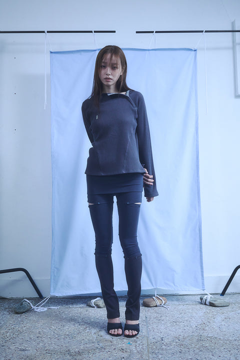 BUTTON SKIRT LEGGINGS / NAVY