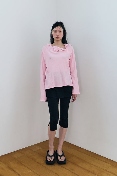LIGHT SLIM WAFFLE HOODIE / PINK